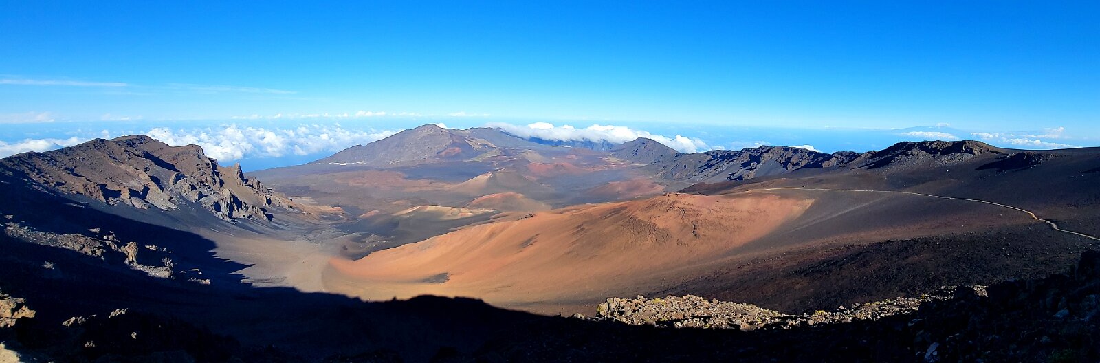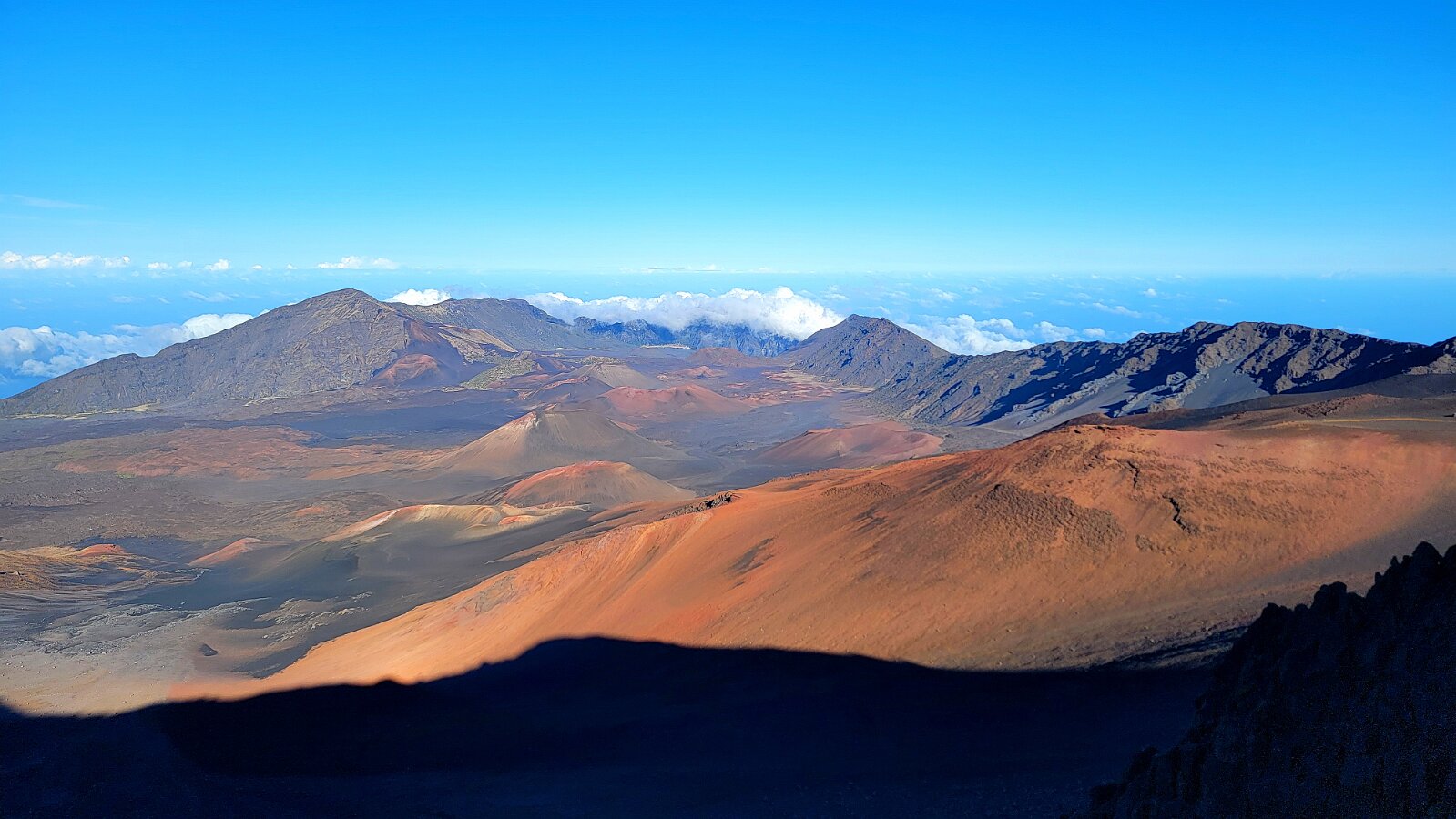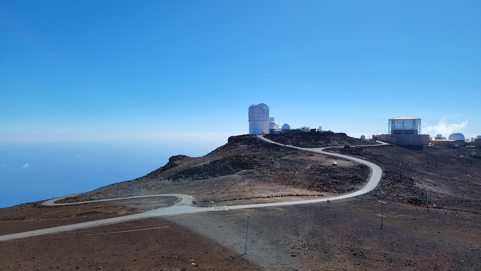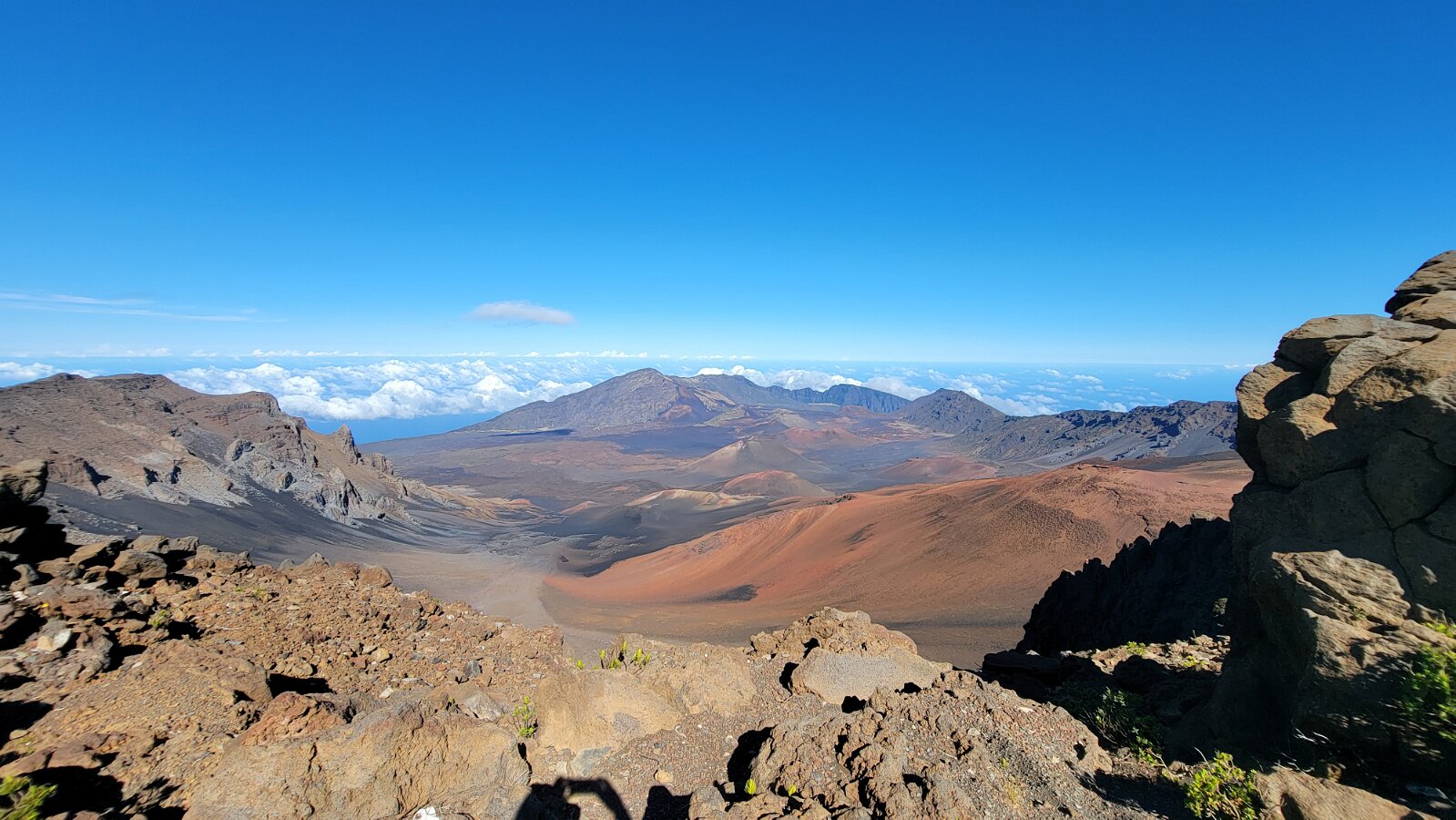 After breakfast we got ready to snorkel. Rod tried to fixhis camera... [and Rod got really mad at his stupid camera ☹]We left a bit after 9:00. Drove past a bunch of resorts, passed some big homestoo to PalaueaBeach [aka White Rock]. Found a parking spot easily! 😊 Beautiful beach. There were a lot of people there but it didn't seem crowded. Swamaround for about an hour. It was hard to keep track of Rod. I think his weightbelt kept him lower when he was on the surface. Anyhoo… we couldn't see him ☹.Nora and I headed in a bit. Rod saw us and came in. The coral was reallybleached, saw fish but no turtles ☹. We did hear whales under the water. Rod caught thesound on video. Back to our place for lunch and a rest, then, up the mountain.Drove up Haleakalā. We stoppedat the visitors center first. A ranger told rod the best place to see thesunset was the parking lot of the Upper Visitors Center. The center was closed,but the potty was open. A long, twisty drive up the mountain. The observationarea at the top was beautiful! Windy& cold tho! Back down at the Haleakala Visitors Center we went on a shorthike. Great views. Had a snack & rest in the car. Sunset was at 6:39.Beautiful! Down the mountain in the dark! Leftover burgers for Nora & me.Rod had a croissant.