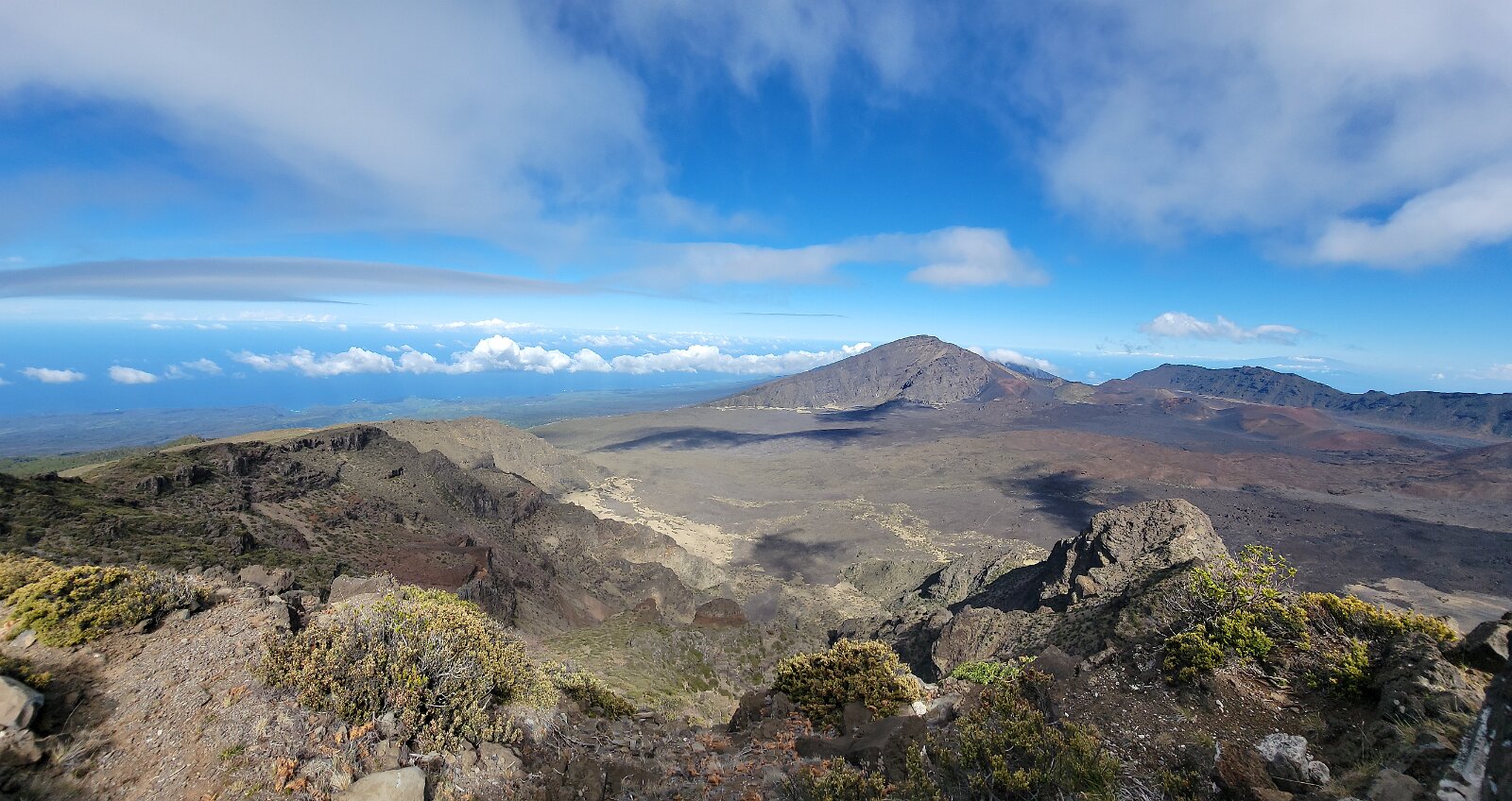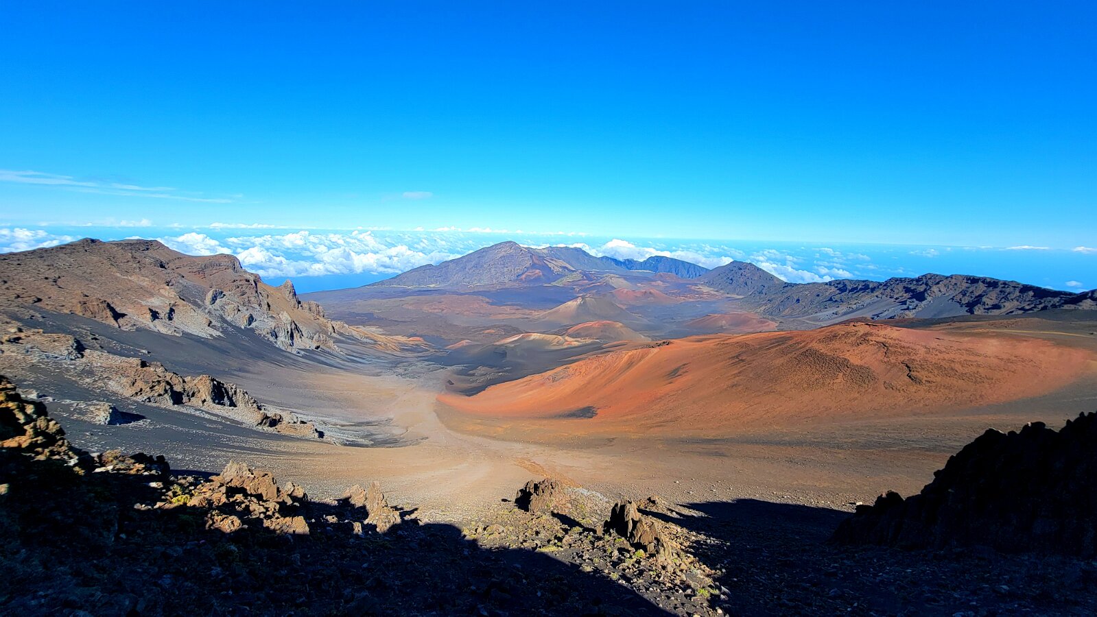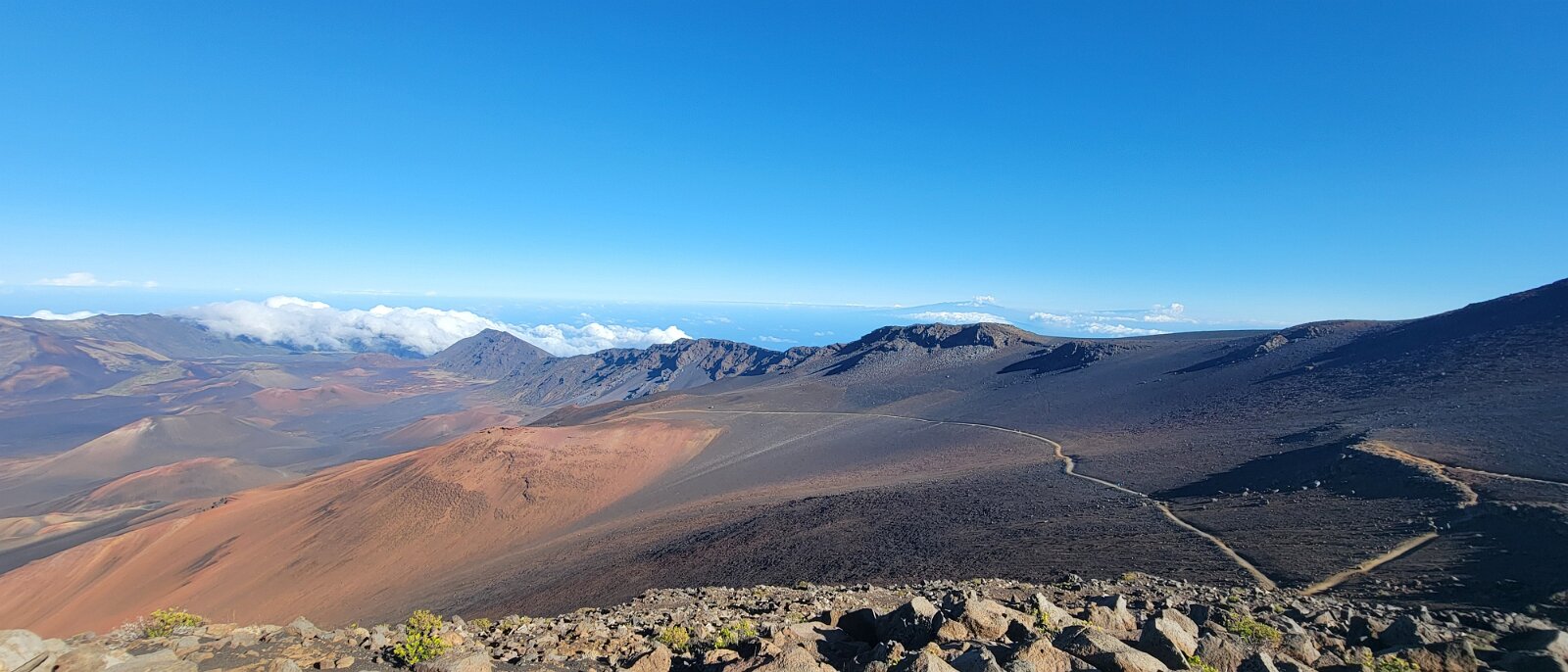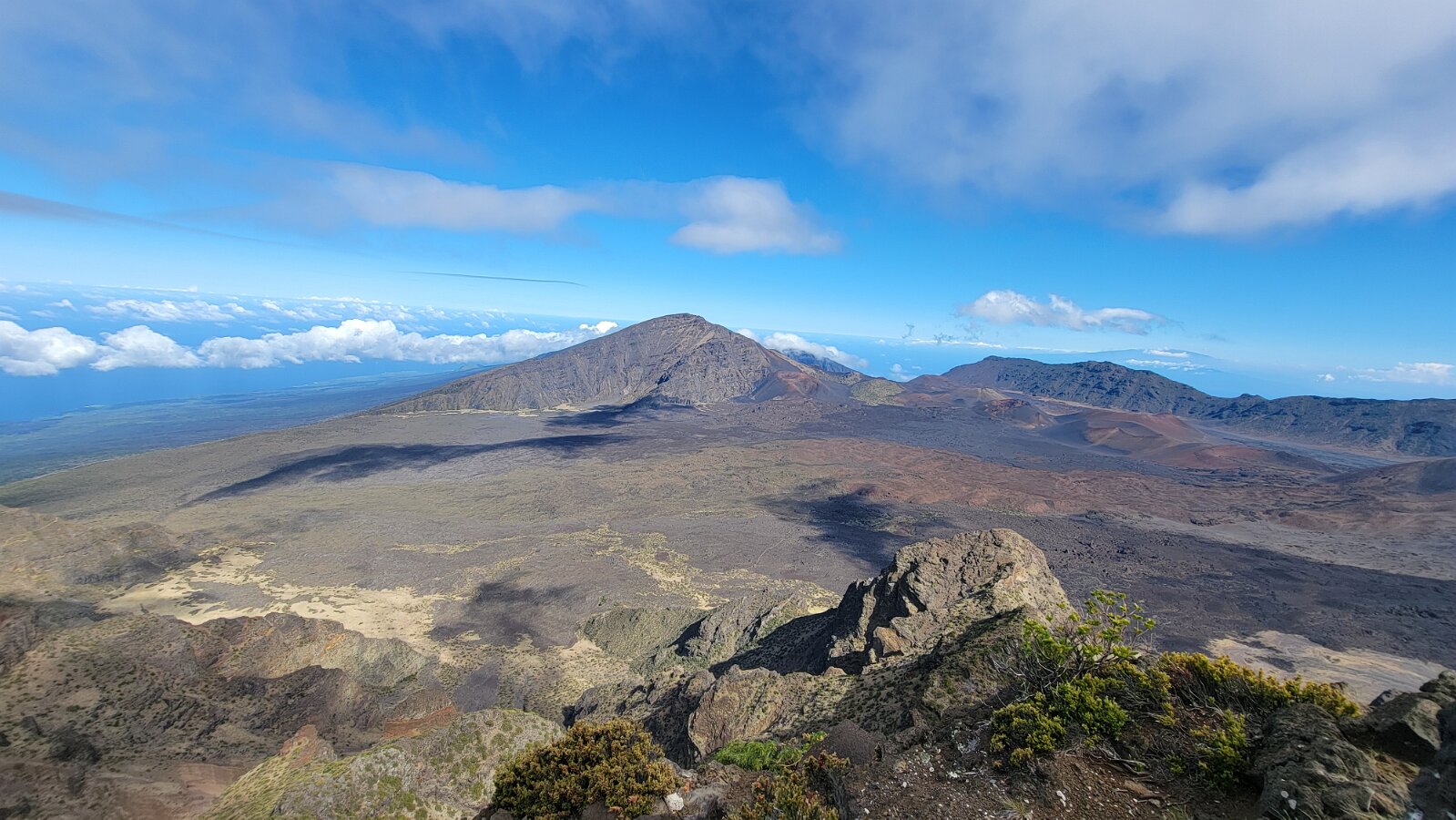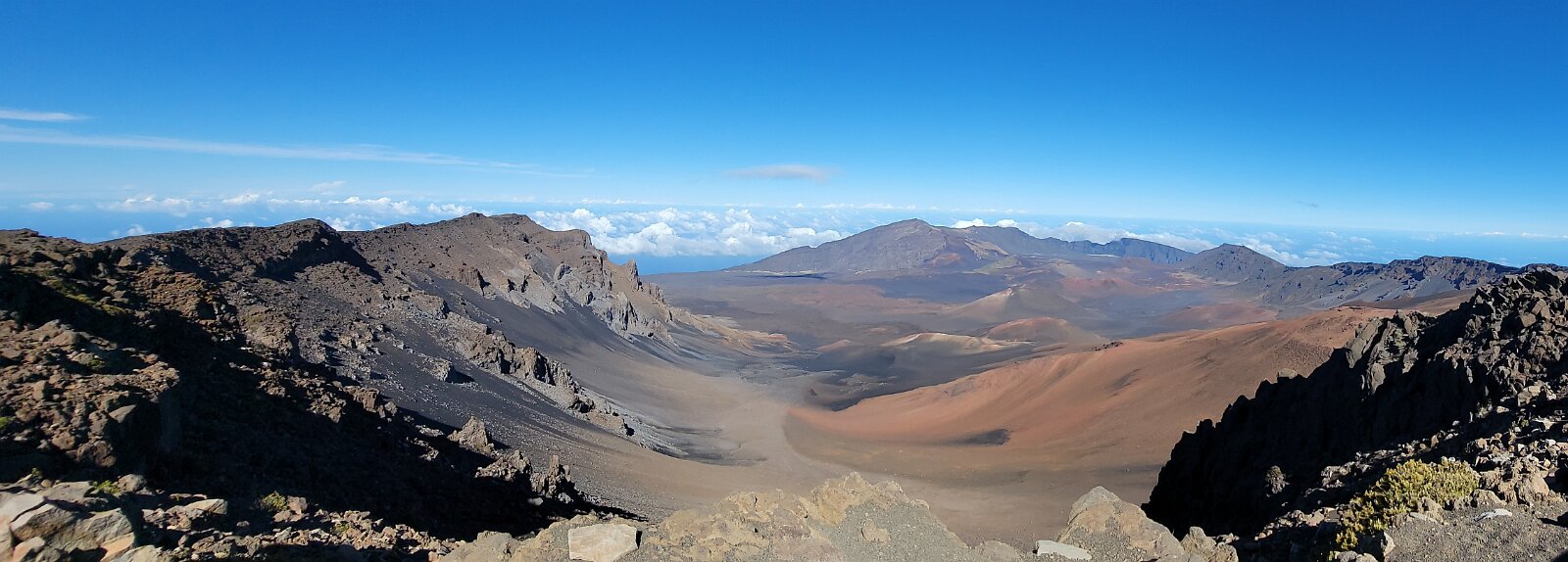 After breakfast we got ready to snorkel. Rod tried to fixhis camera... [and Rod got really mad at his stupid camera ☹]We left a bit after 9:00. Drove past a bunch of resorts, passed some big homestoo to PalaueaBeach [aka White Rock]. Found a parking spot easily! 😊 Beautiful beach. There were a lot of people there but it didn't seem crowded. Swamaround for about an hour. It was hard to keep track of Rod. I think his weightbelt kept him lower when he was on the surface. Anyhoo… we couldn't see him ☹.Nora and I headed in a bit. Rod saw us and came in. The coral was reallybleached, saw fish but no turtles ☹. We did hear whales under the water. Rod caught thesound on video. Back to our place for lunch and a rest, then, up the mountain.Drove up Haleakalā. We stoppedat the visitors center first. A ranger told rod the best place to see thesunset was the parking lot of the Upper Visitors Center. The center was closed,but the potty was open. A long, twisty drive up the mountain. The observationarea at the top was beautiful! Windy& cold tho! Back down at the Haleakala Visitors Center we went on a shorthike. Great views. Had a snack & rest in the car. Sunset was at 6:39.Beautiful! Down the mountain in the dark! Leftover burgers for Nora & me.Rod had a croissant.
